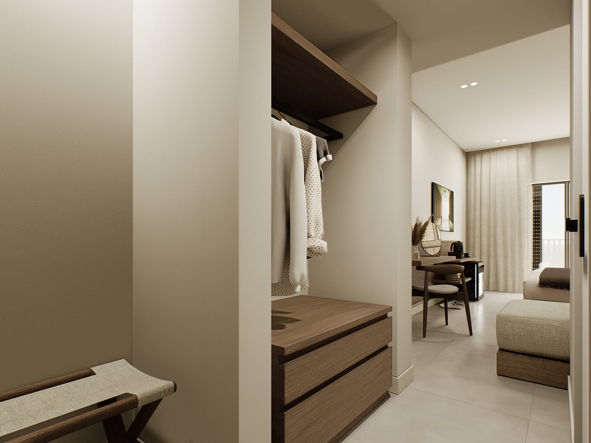 Our new designed Deluxe Rooms are spacious rooms ideal for couples and honeymooners, looking for a freshly designed accommodation with personalized facilities and with a touch of luxury. Consisting of one bathroom with shower.
