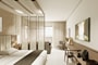 The Signature Suite offers a calm and elegant stay, designed in soft natural tones with modern finishes. It features a comfortable sleeping area, a welcoming sitting area, a private balcony, and a contemporary bathroom with a walk-in shower, creating a refined and relaxing experience.